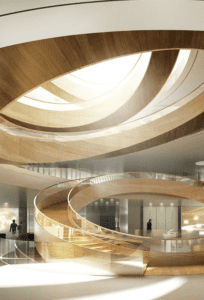 With only 14 columns across the entire structure, every inch of space has been maximised. The open plan spaces, transparency and shared spaces encourage communication, facilitation and interaction as well as being aesthetically pleasing.
